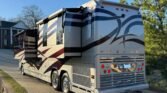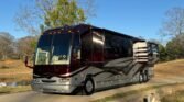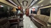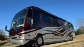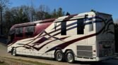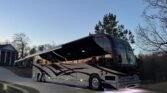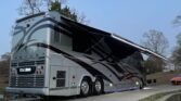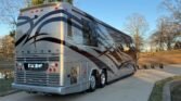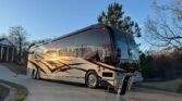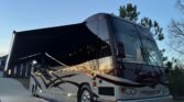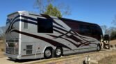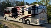 This 2010 Prevost Featherlite makes an epic statement with its bold paint job. The audacity it took to spec this coach—it’s something else. I personally am in love with the paint. Then you step inside, and it’s a whole different level: the interior colors are tasteful and exquisite, perfectly balanced with high quality materials everywhere. Updated tile flows throughout the bus, giving it a fresh and refined feel. Hints of the yachting world are sensed as the cabinetry…