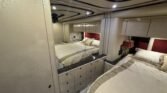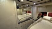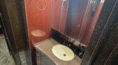 This 2010 Prevost Featherlite makes an epic statement with its bold paint job. The audacity it took to spec this coach—it’s something else. I personally am in love with the paint. Then you step inside, and it’s a whole different level: the interior colors are tasteful and exquisite, perfectly balanced with high quality materials everywhere. Updated tile flows throughout the bus, giving it a fresh and refined feel. Hints of the yachting world are sensed as the cabinetry flows through the coach