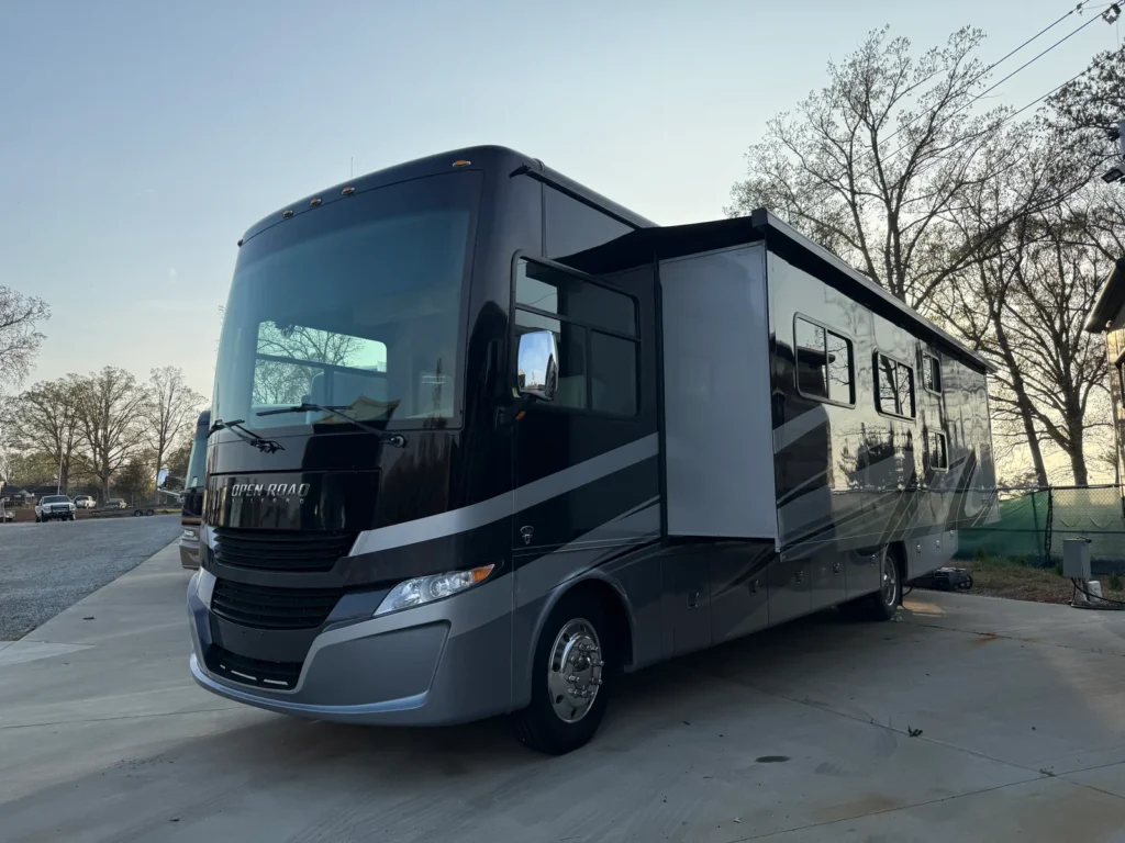 2021 Tiffin Open Road 36UA bath and a half with king size bed, bunk beds and front bed, sleeps 7-8 people. Solar panels on the roof, outside entertainment, LED lights on patio awning. Has a central vacuum, with hoses. Low mileage, well taken care of clean coach.  V8 7.3L engine, ford chassis, Onan 7000 generator. Detailed video coming soon!